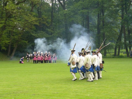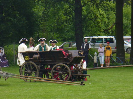 Již čtvrtým rokem probíhají oslavy bitvy u Kolína i ve Svojšicích. Letos zhlédli diváci ukázku srážky hlídek a přepadení zásobovacího transportu s chlebem. S menším zpožděním dorazila i jezdecká hlídka. Účast vojáků byla oproti minulým rokům opět o něco větší, přijelo asi 70 vojáků a nechyběli ani ti nejmenší, jak je vidět na následujících fotografiích. Po ukázce bitvy se děti svezly na koněm taženém voze. Nezklamalo nás ani počasí. Sluníčko sice svítilo jen chvíli, ale důležité je, že nás nezastihl déšť. Všichni jsme se pobavili, poučili a dobře napapali.